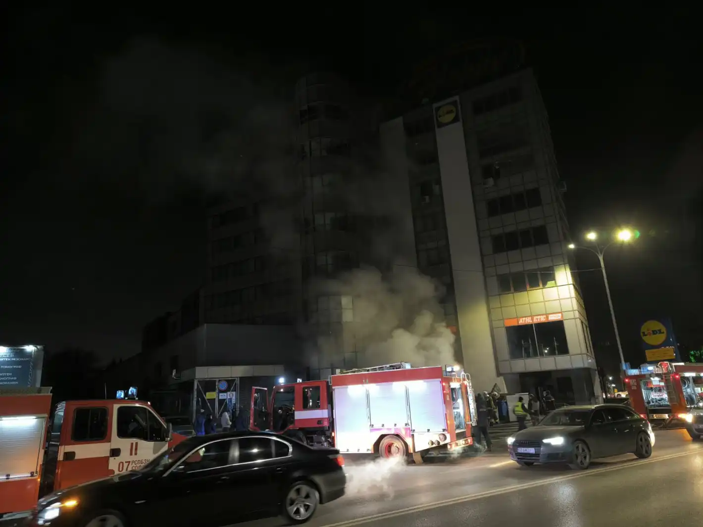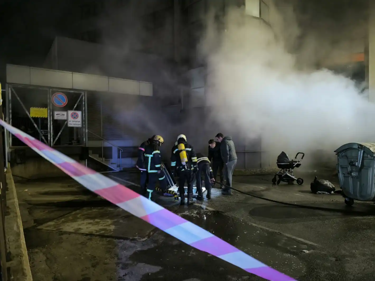 На място са пристигнали четири пожарни коли и линейка. Близо 40 души са били евакуирани от сградата над паркинга. Няма пострадали хора, а огънят е овладян.
