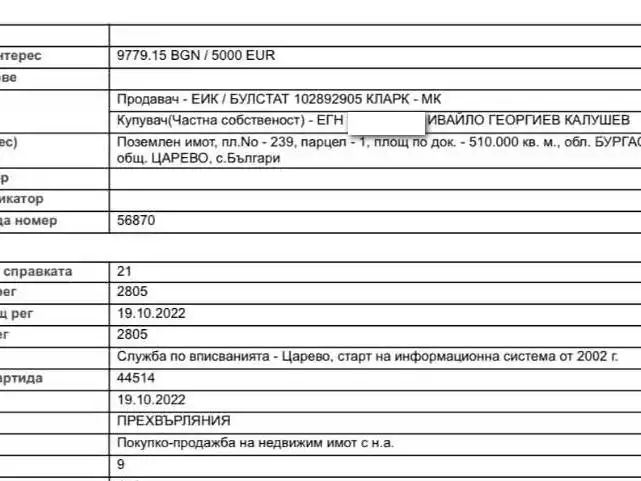 В имотния регистър е записано какво официално се води на името на Ивайло Калушев в община Царево. Все още остава неясно на кого принадлежат останалите декари.